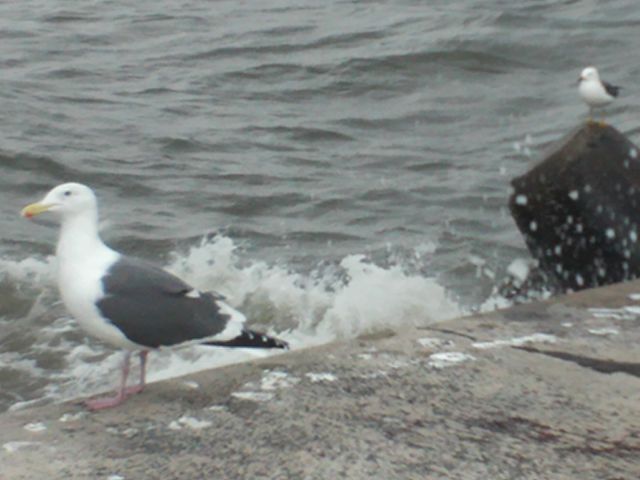 堤防の海鳥たちも寒いのか、餌が見つからないのか、