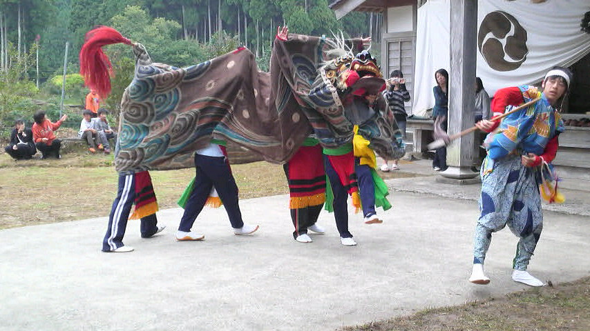 October 03, 2011 秋祭り〜獅子舞 収穫祭が各地で盛んなようですが、先週末は嫁の実家の秋祭り。。。 恒例の獅子舞!! 息子は天狗で私はお獅子の中、と親子で頑張ってきました! いつも息子の天狗の動きを不満に思っている嫁、 「○○(息子の名前)、今年こそダラダラ踊らんと、 ピシっと決めるところは決めんとダメねんしね !!!」 そのかいあってか?息子の天狗の踊りはなかなかシャープで 私の携帯では動きが早過ぎてこんな感じにしか写りませんでした。。。 言われればできるのに、なぜやらないのか??? ノンビリ屋の息子です・・・(^_^;) ブログランキングに参加中です! クリックして頂けたら励みになるので↓↓↓っとお願いします(*^^)v タグ :#獅子舞#息子#ノンビリ屋